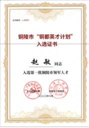 九、趙敏繼曾獲得“安徽省技術創(chuàng)新領軍人才”稱號后,2020年又入選銅陵市“銅都英才計劃”,被中共銅陵市委、銅陵市人民政府授予首批“銅陵市領軍人才”稱號。