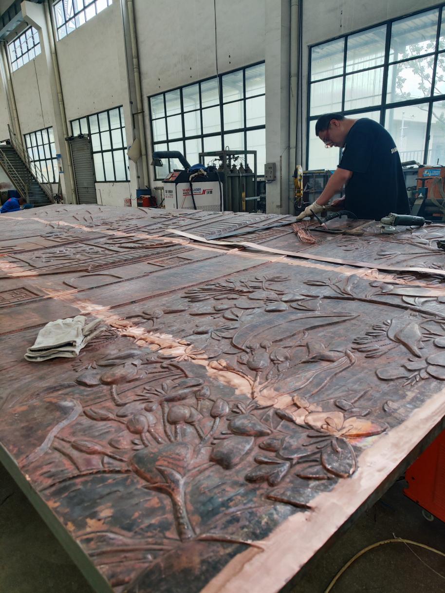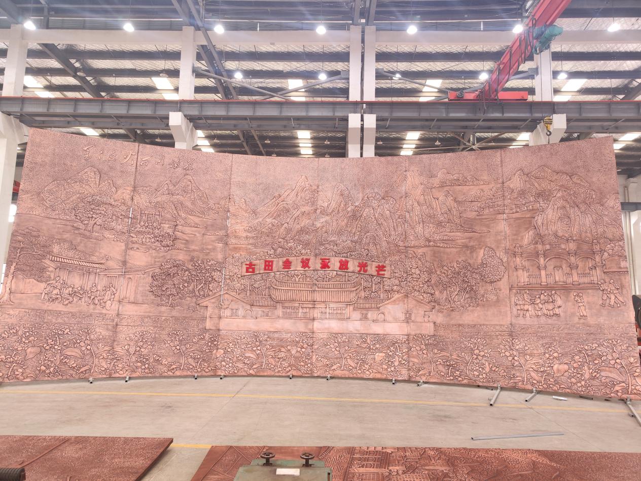 12月26日,龍龍高鐵龍巖至武平段正式開通運(yùn)營(yíng),由銅陵銅官府文化創(chuàng)意股份公司設(shè)計(jì)并制作的大型銅浮雕在上杭高鐵站正式交付使用。該項(xiàng)目在地方政府支持下,公司全體員工克服了雙曲面、體積大、畫面復(fù)雜、安裝難度高等困難,歷時(shí)3個(gè)月順利完工。