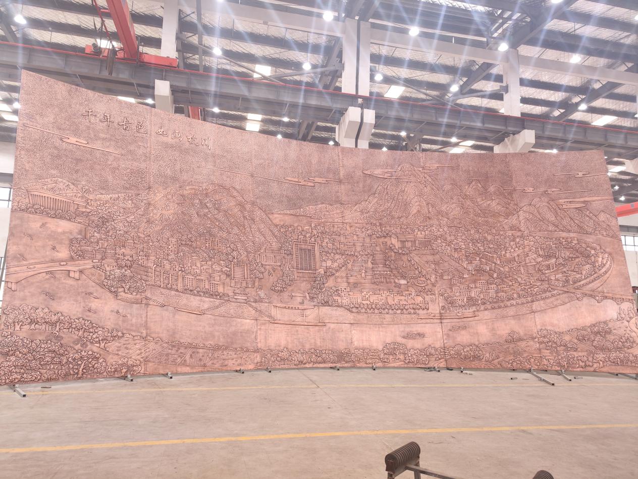 站房西側(cè)銅雕《千年古邑如畫杭川》(圖片來自中國(guó)鐵路)